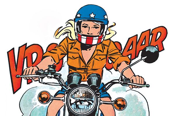 Après les trois éditions limitées de Michel Vaillant, Veldt est fier de présenter un quatrième casque inspiré d’un des personnages de Jean Graton. Ce casque porte les étoiles et les rayures du drapeau national de Julie Wood. Touche-à-tout – enduro, piste, ou dirt track, elle incarne la grande époque du cirque continental. Un pour les filles alors… et pour les garçons éventuellement !