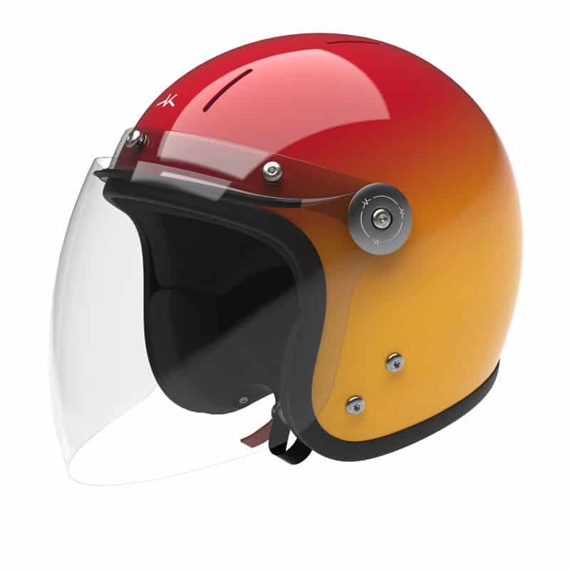 Casque jet en carbone léger et protecteur équipé d’une visière d’excellente qualité optique (Class 1). Intérieur durable, confortable et que vous pouvez ajuster à votre morphologie. Fermeture Double-D et vis en titane. Garantie 5 ans. Dégradé de rouge à jaune et vernis brillant.