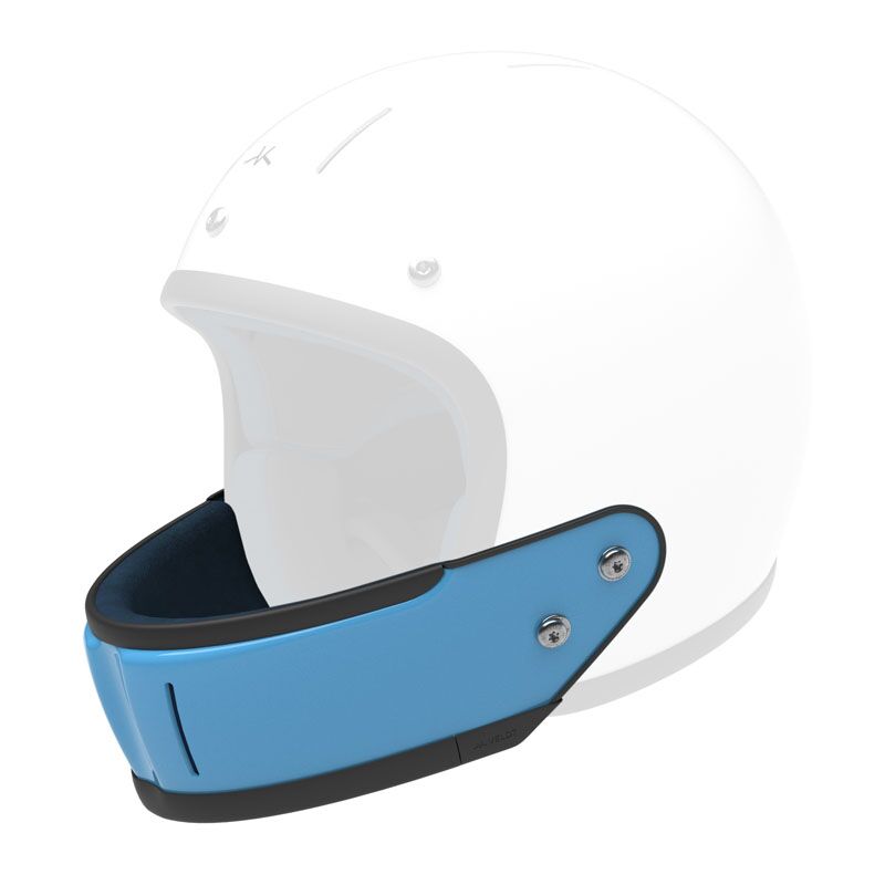 Mentonnière en carbone pour casque Veldt Montlhery. Peinture bleu topaze et vernis brillant.