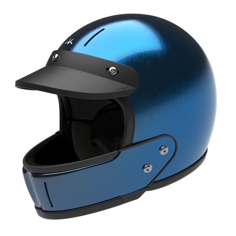 Casque intégral en carbone léger et protecteur coiffé d’une casquette. Intérieur durable, confortable et que vous pouvez ajuster à votre morphologie. Fermeture Double-D et vis en titane. Garantie 5 ans. Feuilles de métal bleu-amalfi mat et vernis brillant.