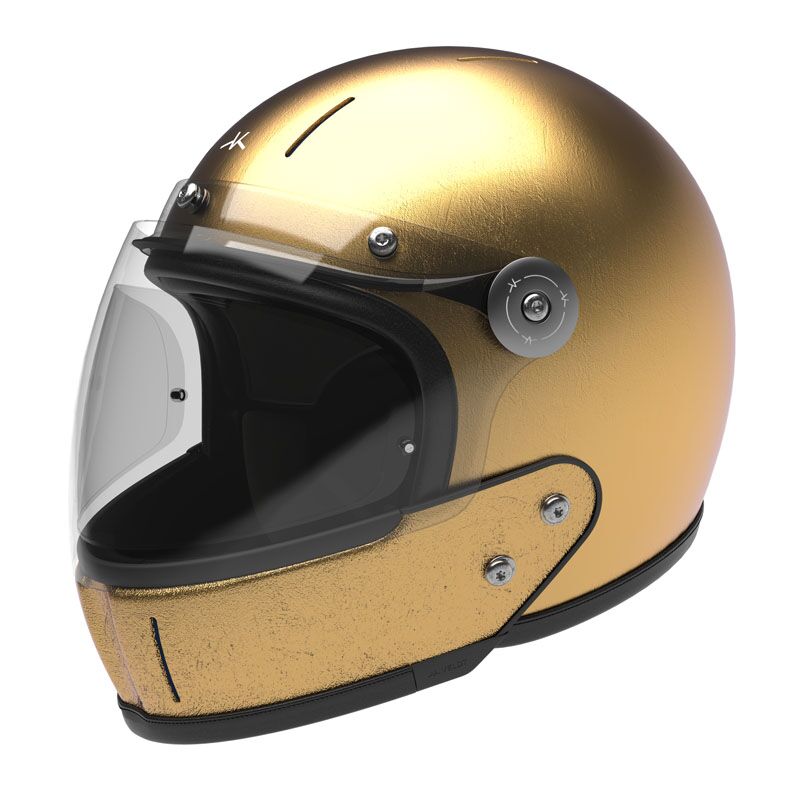 Casque intégral en carbone léger et protecteur équipé d’une visière d’excellente qualité optique (Class 1) et d’un double écran Pinlock 120 contre la buée. Intérieur durable, confortable et que vous pouvez ajuster à votre morphologie. Fermeture Double-D et vis en titane. Garantie 5 ans. Feuilles d’or mat et vernis brillant.