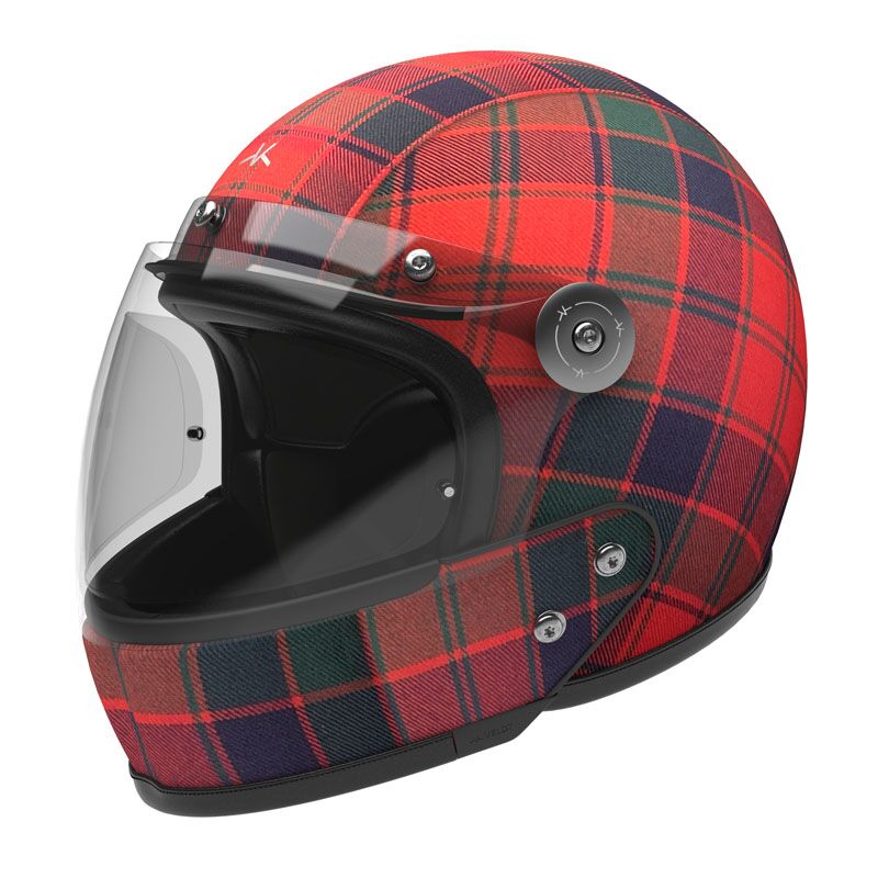 Casque intégral en carbone léger et protecteur équipé d’une visière d’excellente qualité optique (Class 1) et d’un double écran Pinlock 120 contre la buée. Intérieur durable, confortable et que vous pouvez ajuster à votre morphologie. Fermeture Double-D et vis en titane. Garantie 5 ans. Casque gainé de tissus tartan Locharron Mac Phail rouge.