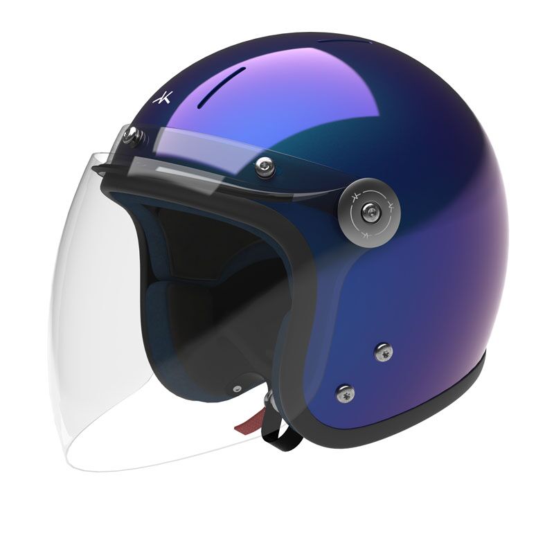 Casque jet en carbone léger et protecteur équipé d’une visière d’excellente qualité optique (Class 1). Intérieur durable, confortable et que vous pouvez ajuster à votre morphologie. Fermeture Double-D et vis en titane. Garantie 5 ans. Peinture iridescente bleue et rose et vernis brillant.