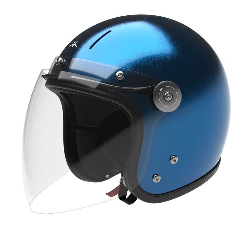 Casque jet en carbone léger et protecteur équipé d’une visière d’excellente qualité optique (Class 1). Intérieur durable, confortable et que vous pouvez ajuster à votre morphologie. Fermeture Double-D et vis en titane. Garantie 5 ans. Feuilles de métal bleu-amalfi mat et vernis brillant.