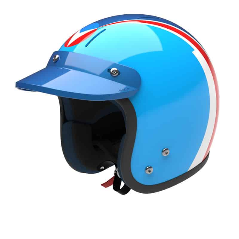Casque jet en carbone, léger et protecteur. Intérieur durable et confortable que vous pouvez adapter à votre morphologie. Système de fixation à double anneau en D et vis en titane. Garantie de 5 ans. Peinture Michel Vaillant 2024 par Adrien Paviot, avec l’introduction d’une peinture bleue métallisée encadrée par une double bande blanche et rouge qui prolonge le logo Vaillant.