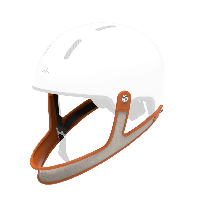 Mentonnière en carbone pour casque Veldt Annecy. Casque gainé de chanvre, intérieur gold en agneau nappa et veau alsacien