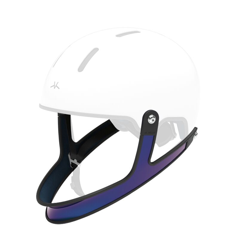 Mentonnière en carbone pour casque Veldt Annecy. Peinture iridescente bleue et rose et vernis brillant.