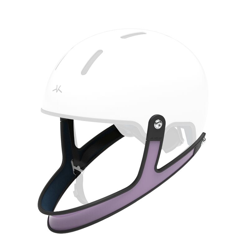 Mentonnière en carbone pour casque Veldt Annecy. Graphisme Doodle blanc sur fond lilas