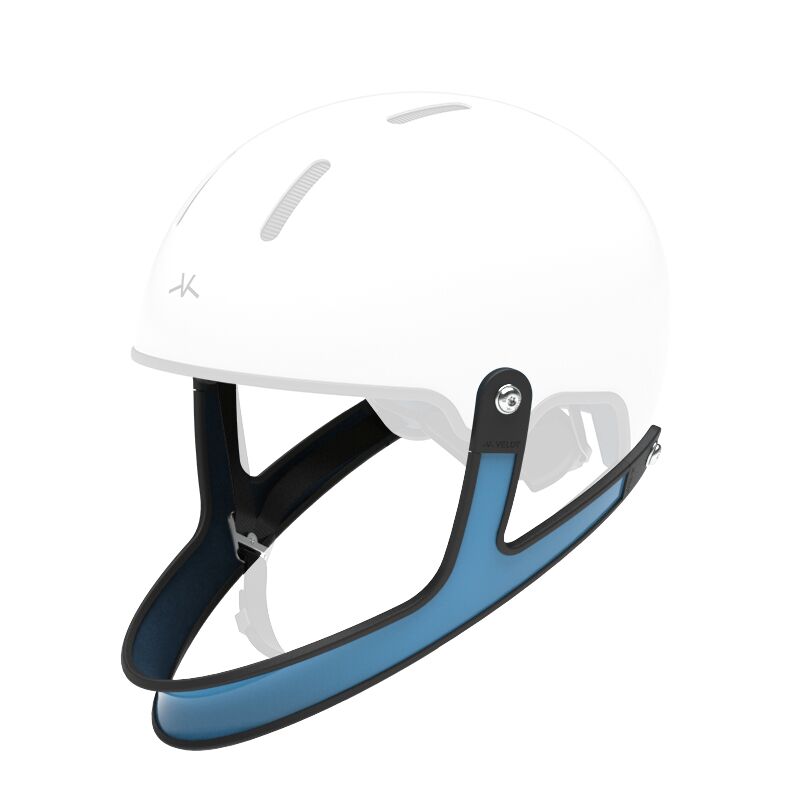 Mentonnière en carbone pour casque Veldt Annecy. Peinture bleu topaze et vernis brillant.