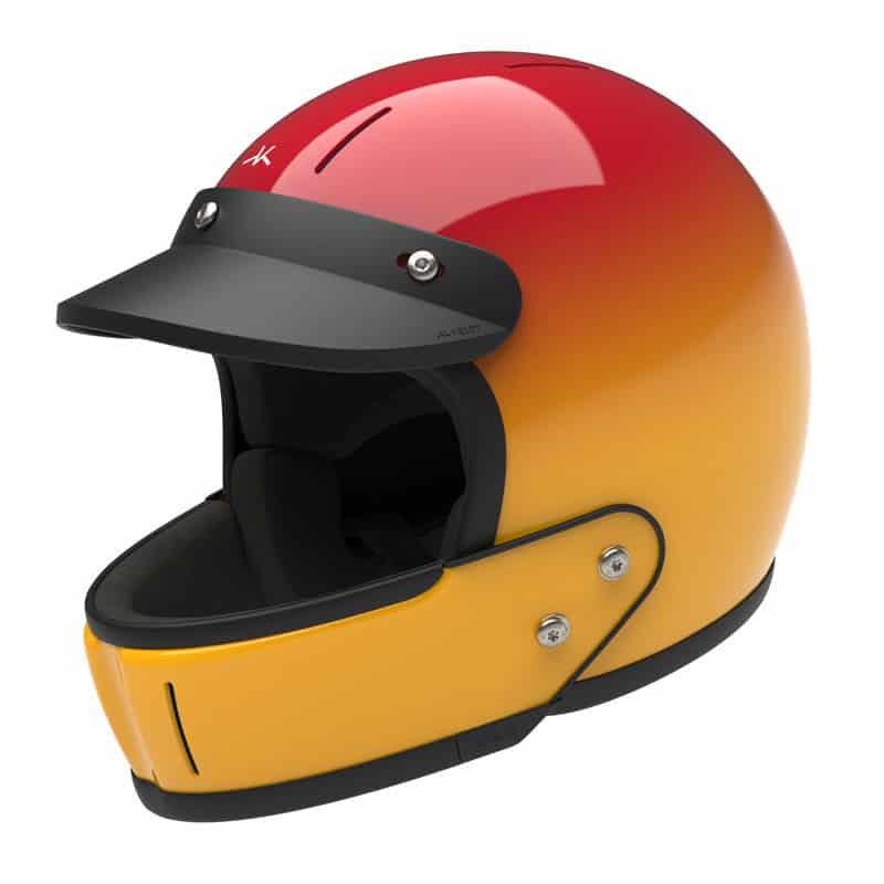 Lightweight and protective carbon fullface helmet with a peak visor. Durable, comfortable interior that you can adjust to your morphology. Double D-ring fastening system and screws in titanium. 5 year warranty. Red to yellow gradient and glossy varnish with black suede interior.