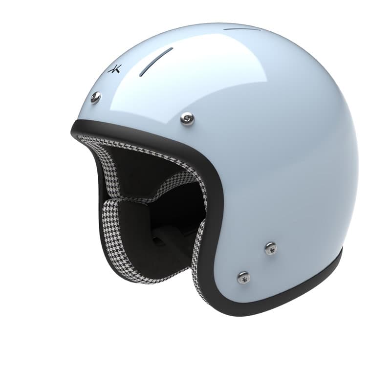 Lightweight and protective carbon jet helmet. Durable, comfortable interior that you can adjust to your morphology. Double D-ring fastening system and screws in titanium. 5 year warranty. Glacier blue and glossy varnish with houndstooth fabric interior.