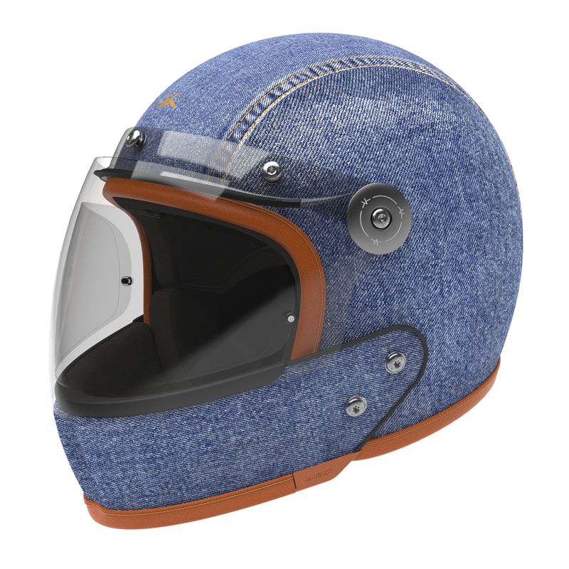 Lightweight and protective carbon fullface helmet equipped with a Class-1 optical quality shield and Pinlock 120 fog resistant insert lens. Durable, comfortable interior that you can adjust to your morphology. Double D-ring fastening system and screws in titanium. 5 year warranty. A denim exterior, with gold lamb lining, finished off with gold calf trim.