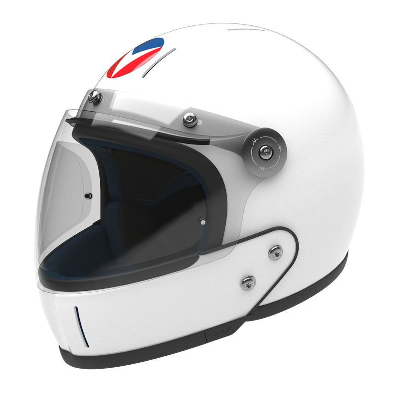 Lightweight and protective carbon fullface helmet equipped with a Class-1 optical quality shield and Pinlock 120 fog resistant insert lens. Durable, comfortable interior that you can adjust to your morphology. Double D-ring fastening system and screws in titanium. 5 year warranty. White paint with the Steve Warson logo of Michel Vaillant comics and glossy varnish.