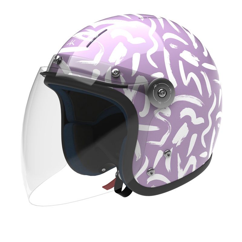 Lightweight and protective carbon jet helmet equipped with a Class-1 optical quality flip up shield. Durable, comfortable interior that you can adjust to your morphology. Double D-ring fastening system and screws in titanium. 5 year warranty. White Doogle graphic on lilac, glossy varnish.