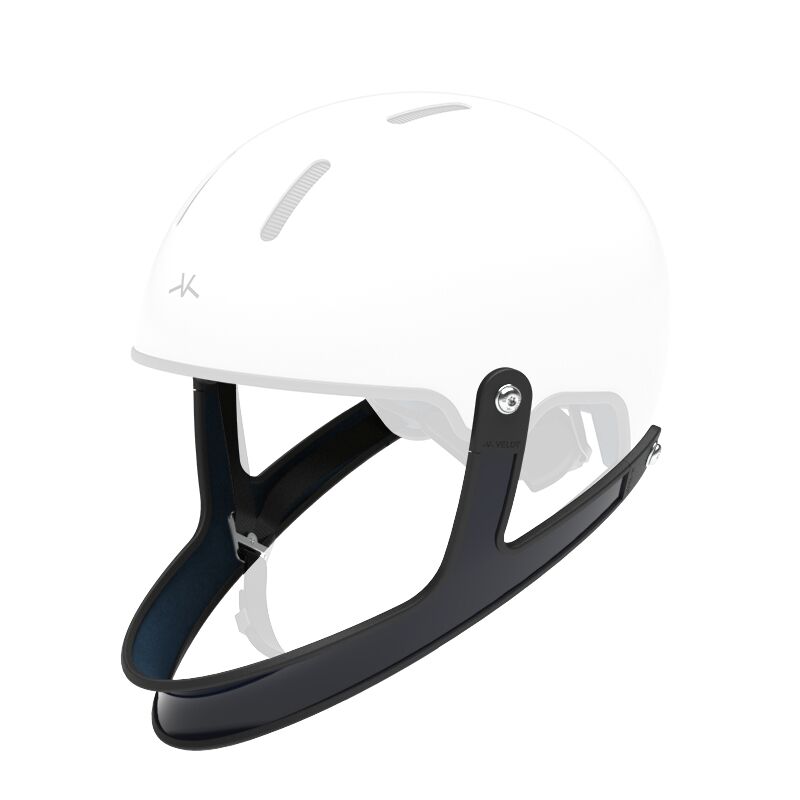 Carbon chinguard for Annecy Veldt helmet. Black Iris blue paint and glossy varnish.