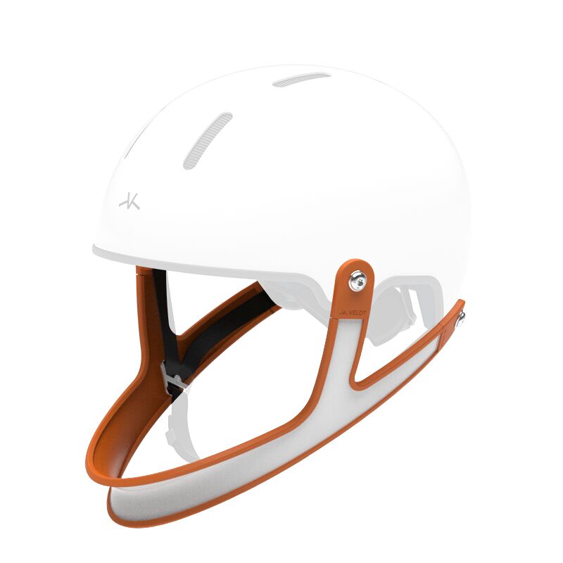 Carbon chinguard for Annecy Veldt helmet. Red triangle on a white helmet with a glossy varnish.