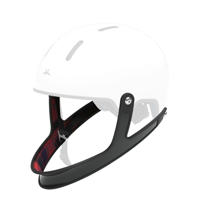 Carbon chinguard for Annecy Veldt helmet. Slate grey exterior with glossy varnish, lined with a Scottish Tartan